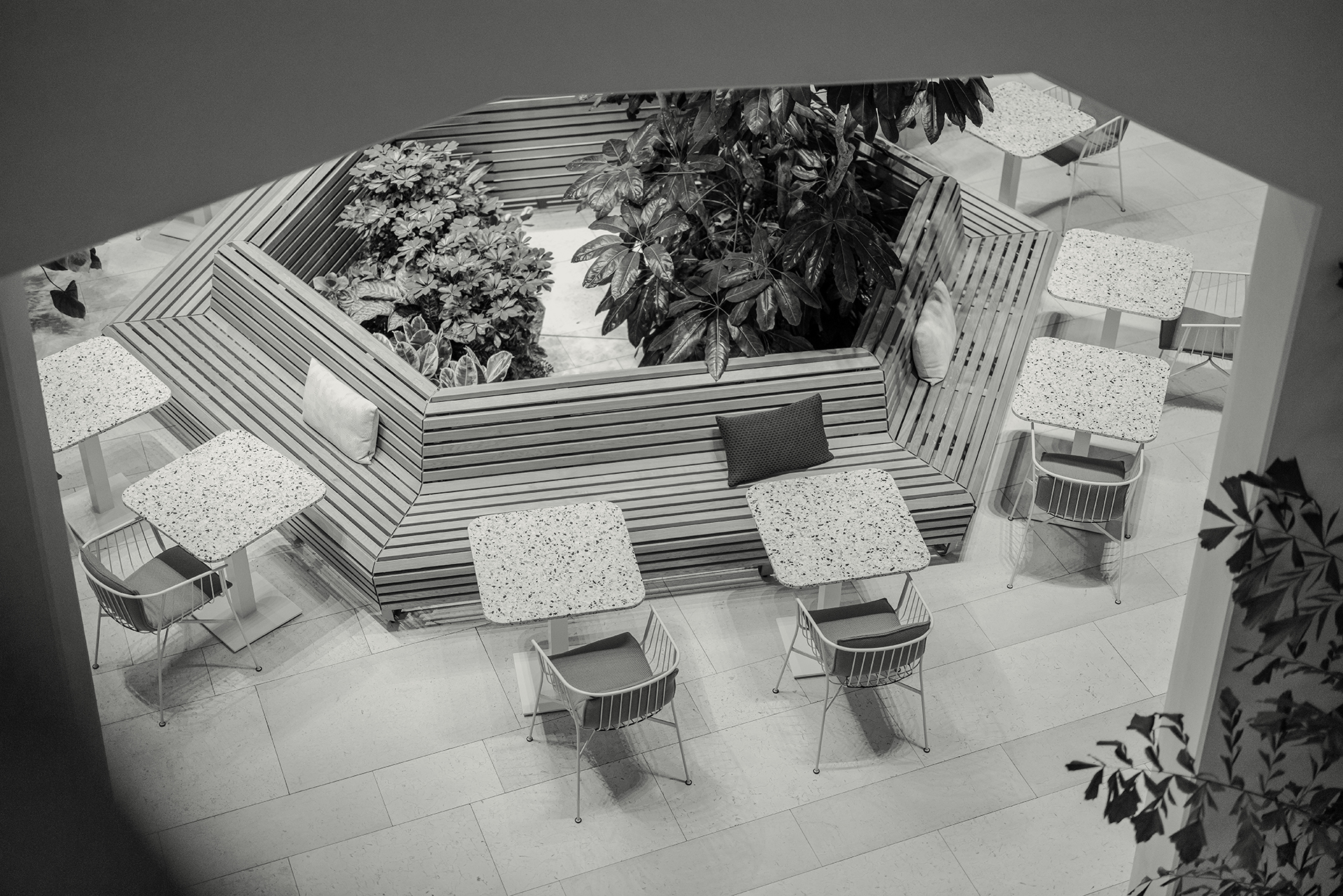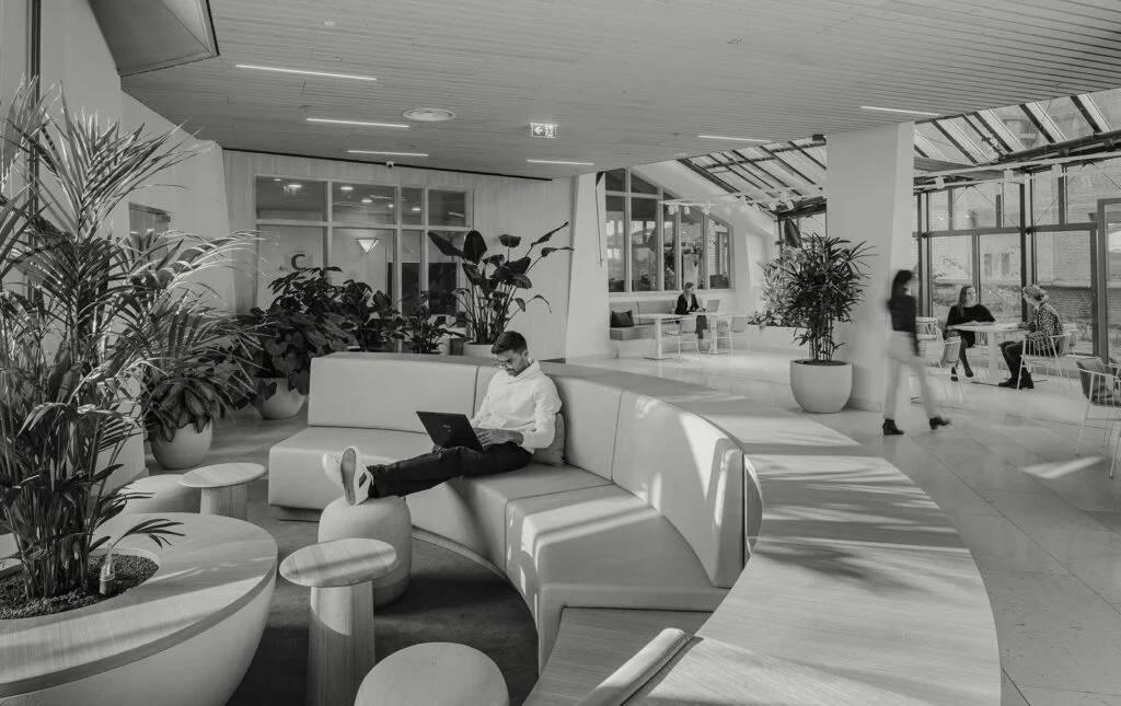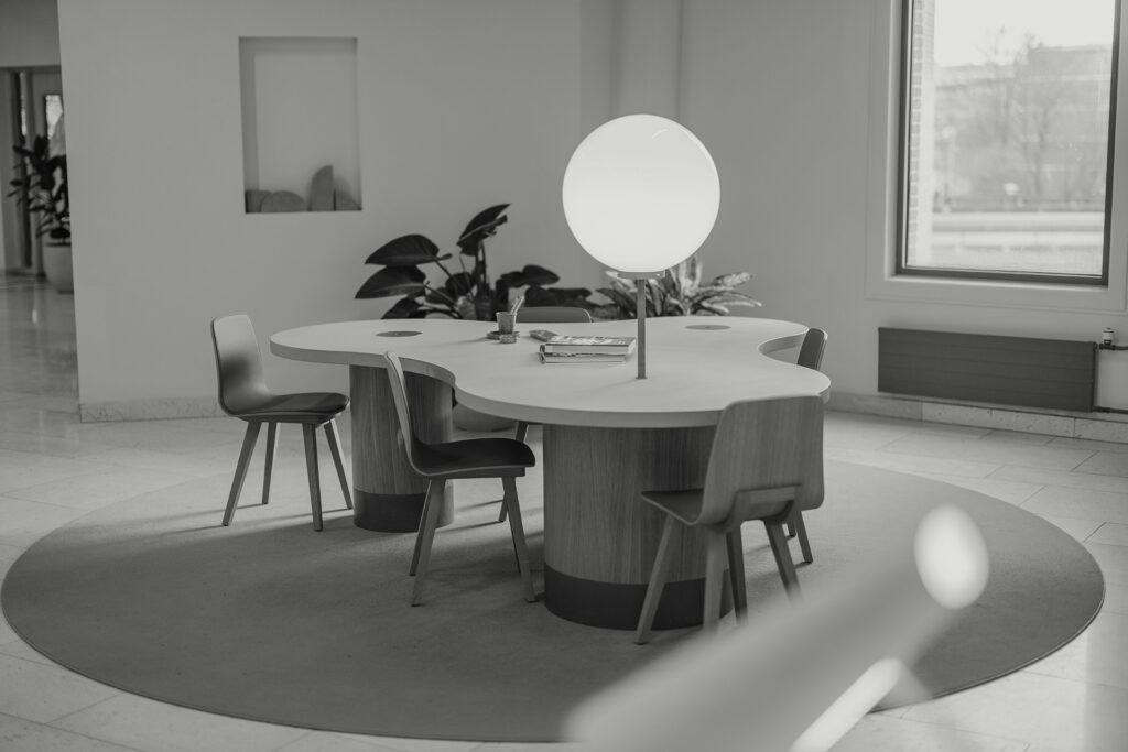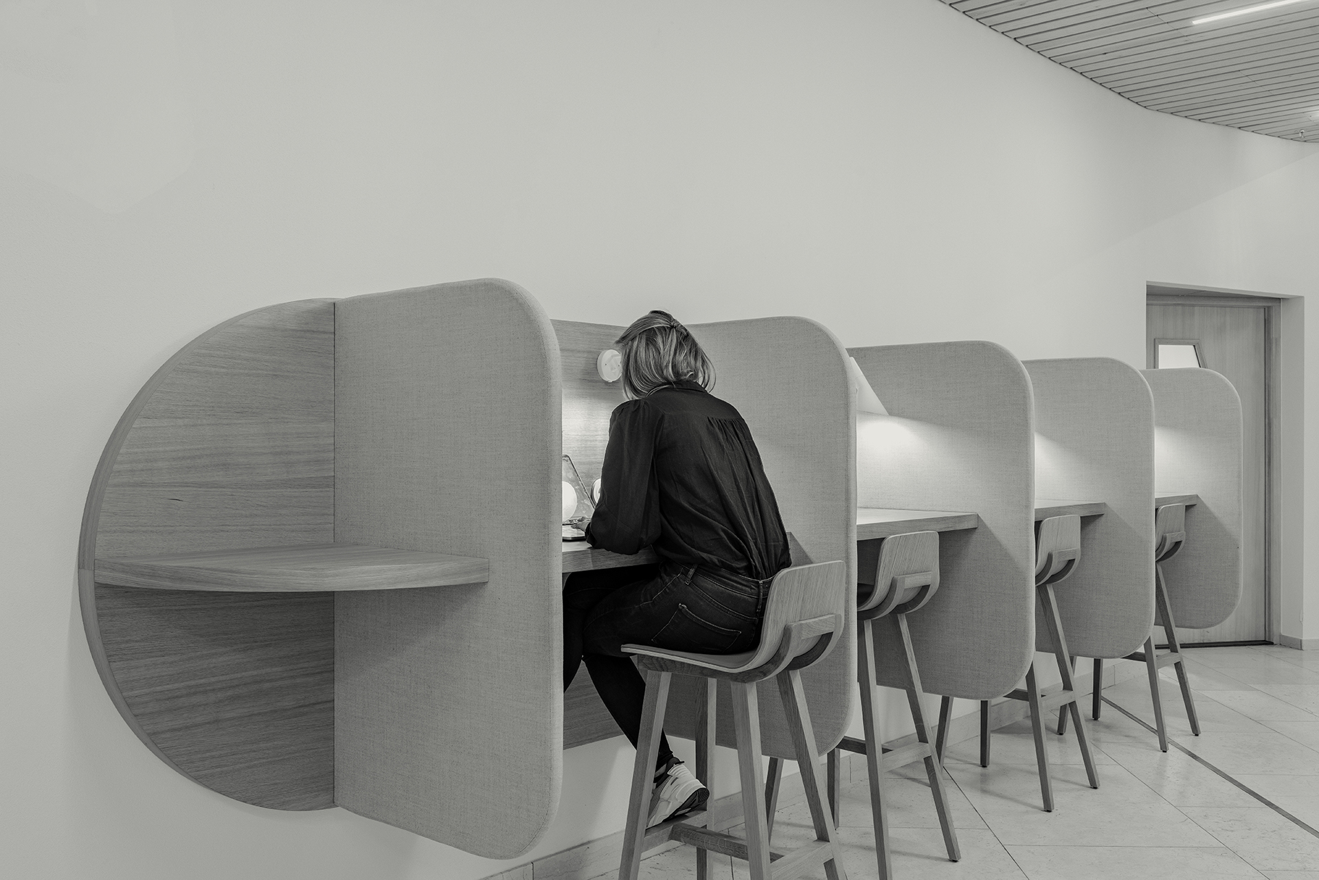 Een interieur van dit formaat staat of valt met de details. Zo moesten de geïntegreerde wandpanelen de akoestiek verbeteren zonder de architectuur te verstoren. De werkplekken moesten robuust zijn, maar licht ogen. En grote zitobjecten moesten uitnodigen zonder aanwezig te worden.