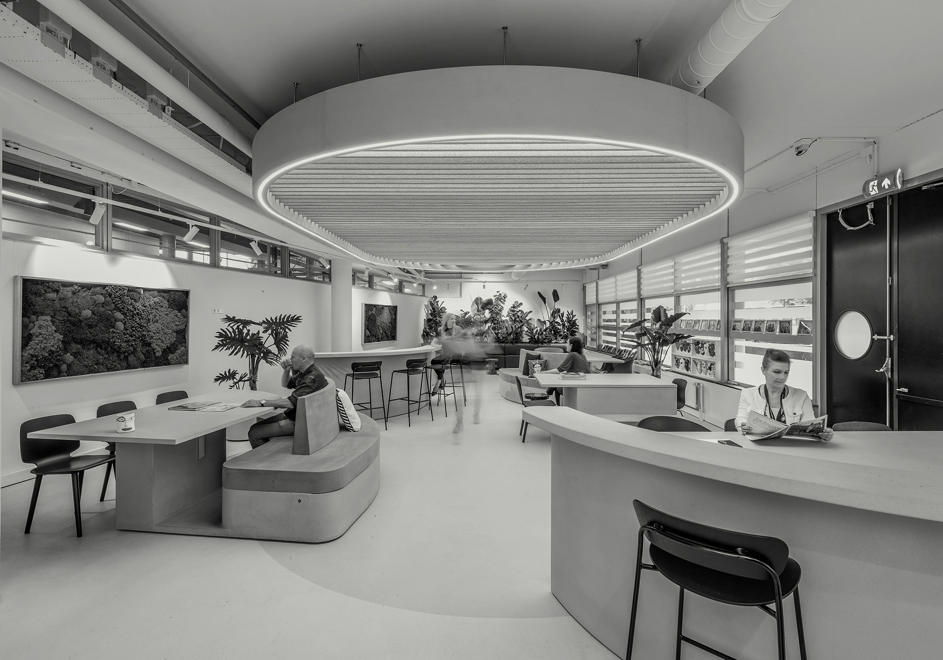 Voor dit project, midden in de Amsterdamse Bijlmer, vroeg Montessori ons niet allen voor het interieur, maar voor de volledige verbouwing. Vloeren, toiletgroepen, lerarenkamer, lokalen, het hele gebouw. Een opdracht waarbij vertrouwen centraal staat, omdat je werkt in een gebouw dat iedere dag beleeft wordt door leerlingen, docenten en ouders.
